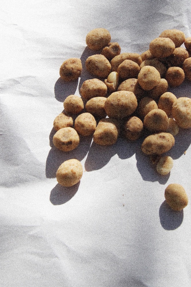 Cacahuates cubiertos de harina de amaranto completamente horneados.