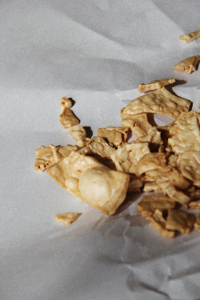 Chicharron vegano, hecho a base de proteína de soya con ingredientes 100% naturales.