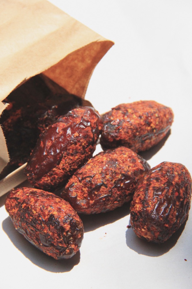 Dátil entero enchilado sin azúcar añadida y un toque de sal rosa del Himalaya.